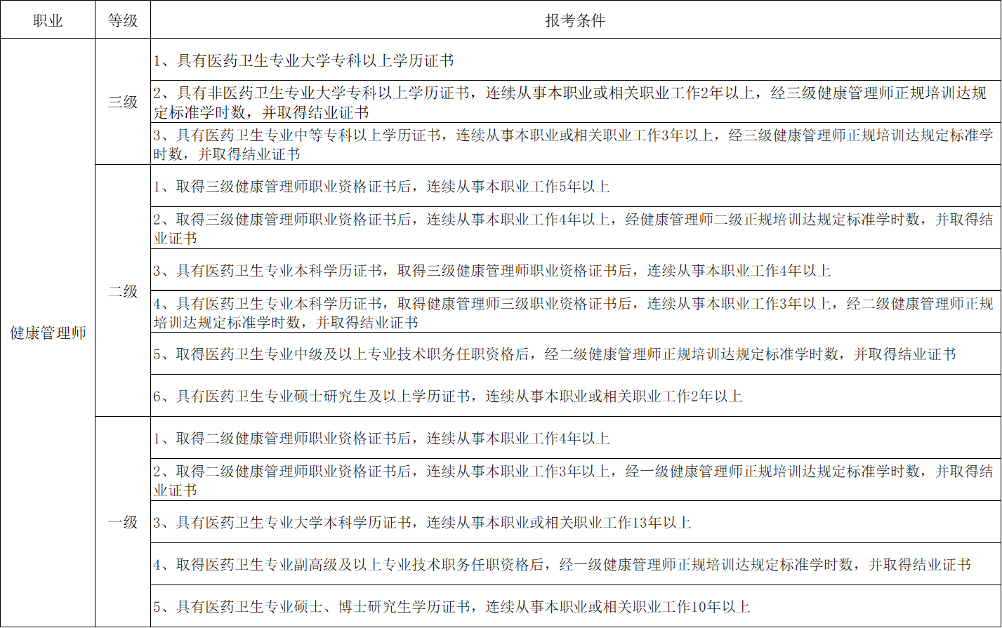 健康管理师(一级、二级、三级)报考条件